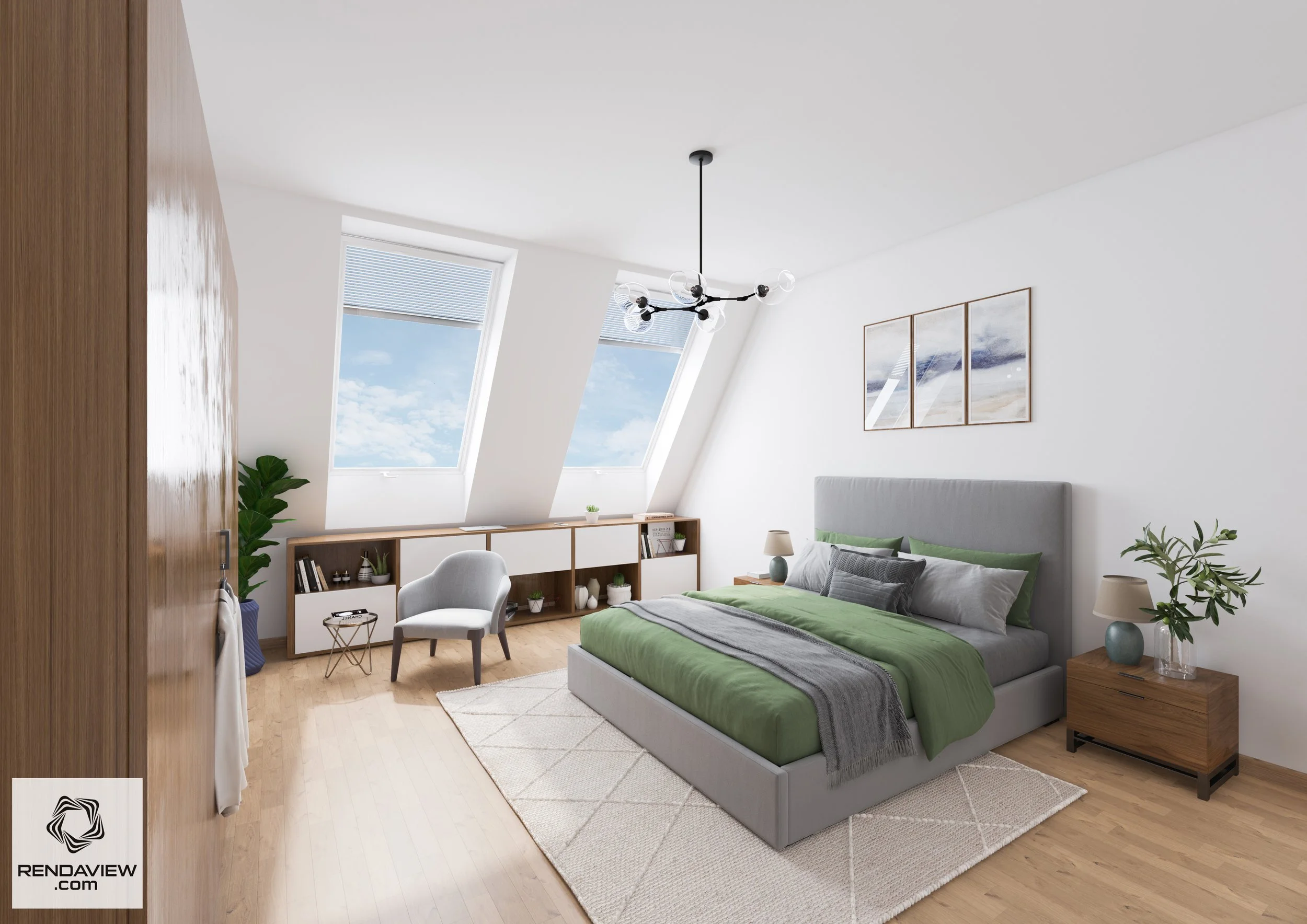 We are very proud to show you one of our first interior visualizations for new clients from amazing Vienna city, Austria. The wooden textures and lighter walls bring very cozy and at the same time very stylish look of this awesome athic bedroom in the historical central part of the city. It was a great pleasure for us to work on this types of projects on such a special place like the Austrian capital city - the home of Mozart and Beethoven. If you have some projects from another great places, all around the globe, please do not waste your time and leave us a message on office@rendaview.com. We are always ready to help.